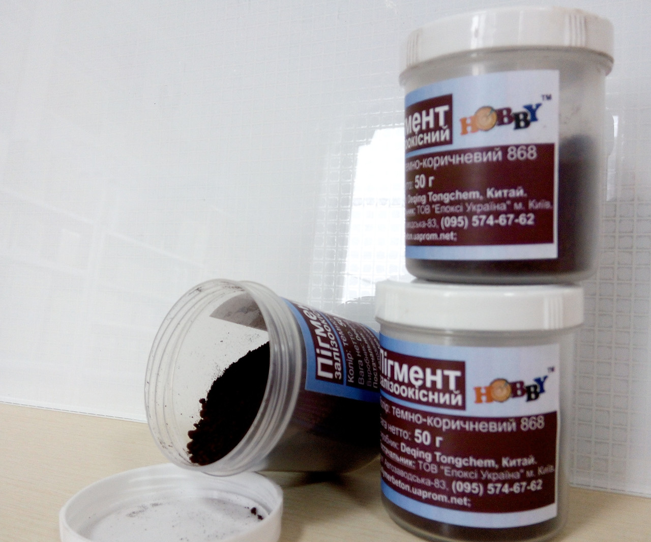 Пігмент залізоокисний темно-коричневий 868 від ТОВ "Епокси Україна" - це порошок з найдрібніших частинок, який є дуже ефектним і універсальним декоративним матеріалом.